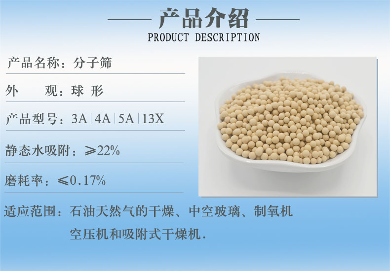- 3A分子篩的孔徑是3A,主要用于吸附水,不吸附直徑大于3A的任何分子,根據(jù)工業(yè)上的應(yīng)用特點(diǎn),我們生產(chǎn)的分子篩具有更快的吸附速度、更多的再生次數(shù)、更高的抗碎強(qiáng)度及抗污染能力,提高了分子篩的利用效率并延長(zhǎng)了分子篩的使用壽命,是石油、化工行業(yè)中氣液相深度干燥、精煉、聚合所必需的首選干燥劑。