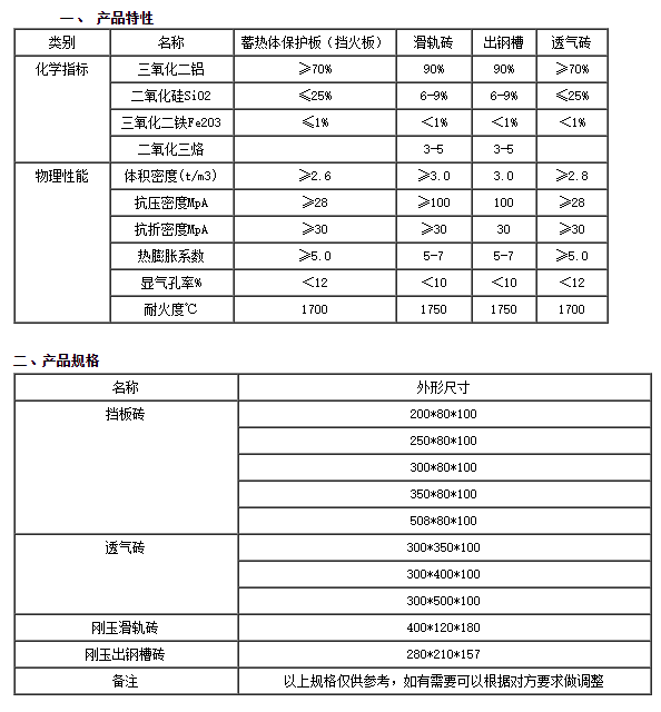 擋板磚、滑軌磚、出鋼槽磚、透氣磚、輕質(zhì)磚